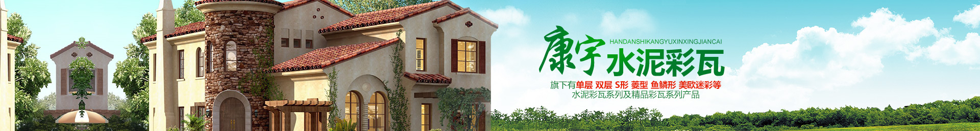 自成立以来,我公司致力于开发集节能、环保、安全的新型建筑材料。目前康宇水泥彩瓦已成为我国品种齐全、规模迅速扩张的水泥彩瓦生产企业,拥有15条现代化生产流水线,专业生产平板瓦,仿古瓦,S型瓦,波形瓦,平板瓦,精品瓦,筒板瓦,罗曼瓦等水泥彩瓦系列及精品彩瓦系列产品。